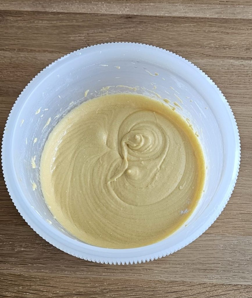 5️⃣ Incorporar la harina tamizada junto con la levadura, mezclando poco a poco. Si la mezcla está demasiado espesa, añade un poco de leche. 🥛