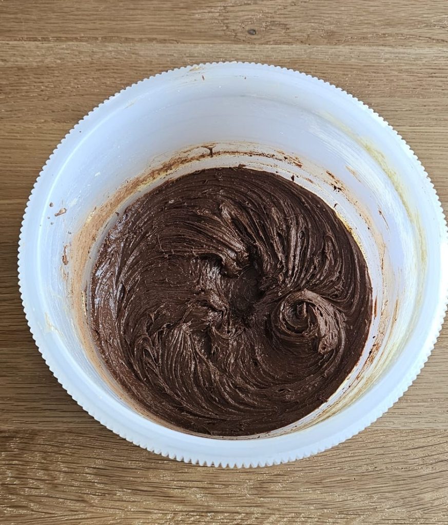 – En uno, añade el cacao en polvo y mezcla hasta integrar.