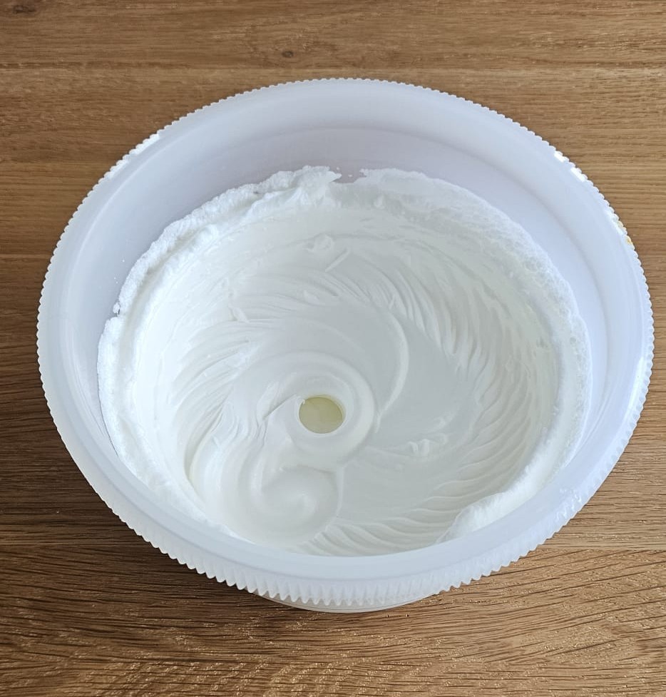 2️⃣ Montar las claras a punto de nieve y reservarlas en la nevera. ❄️