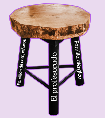 Cada pata representa una parte fundamental para que un niño con alergias esté seguro en el colegio.